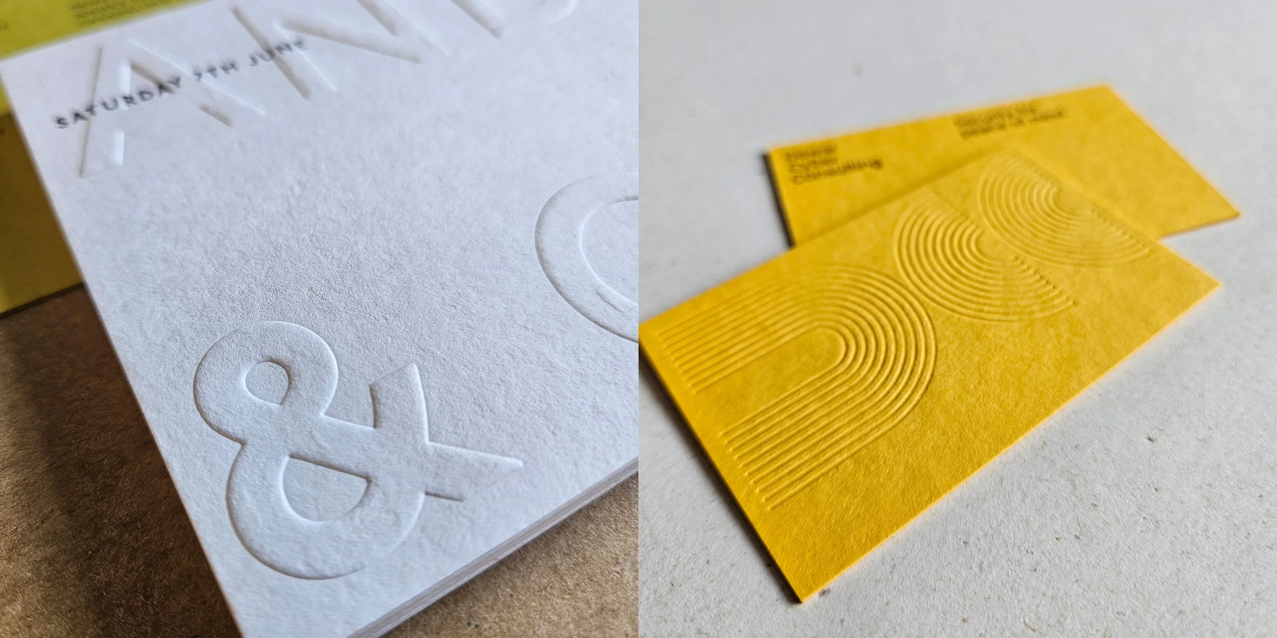 You’ll see embossing and debossing on wedding invites, stationery, packaging, even business cards. Anywhere you want to add texture and presence, these finishes deliver.